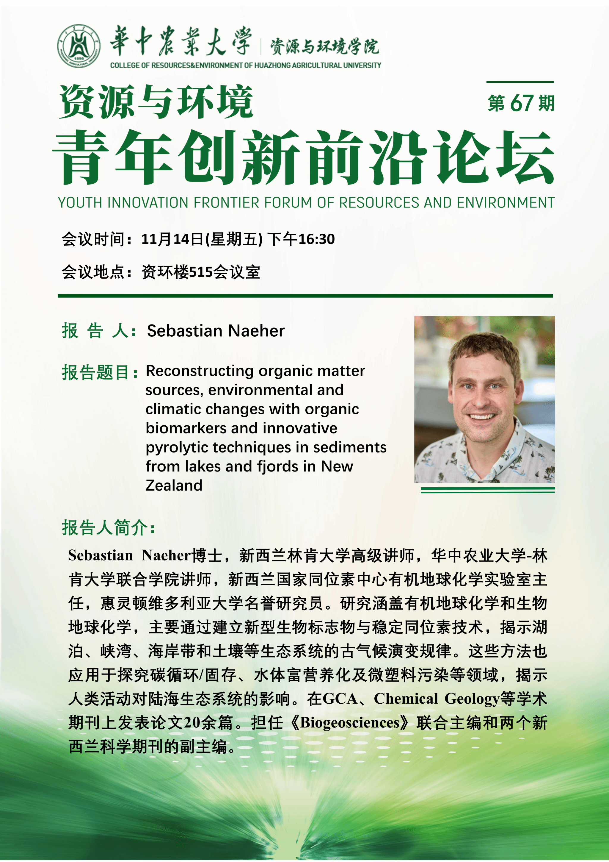 Reconstructing organic matter sources, environmental and climatic changes with organic biomarkers and innovative pyrolytic techniques in sediments from lakes and fjords in New Zealand